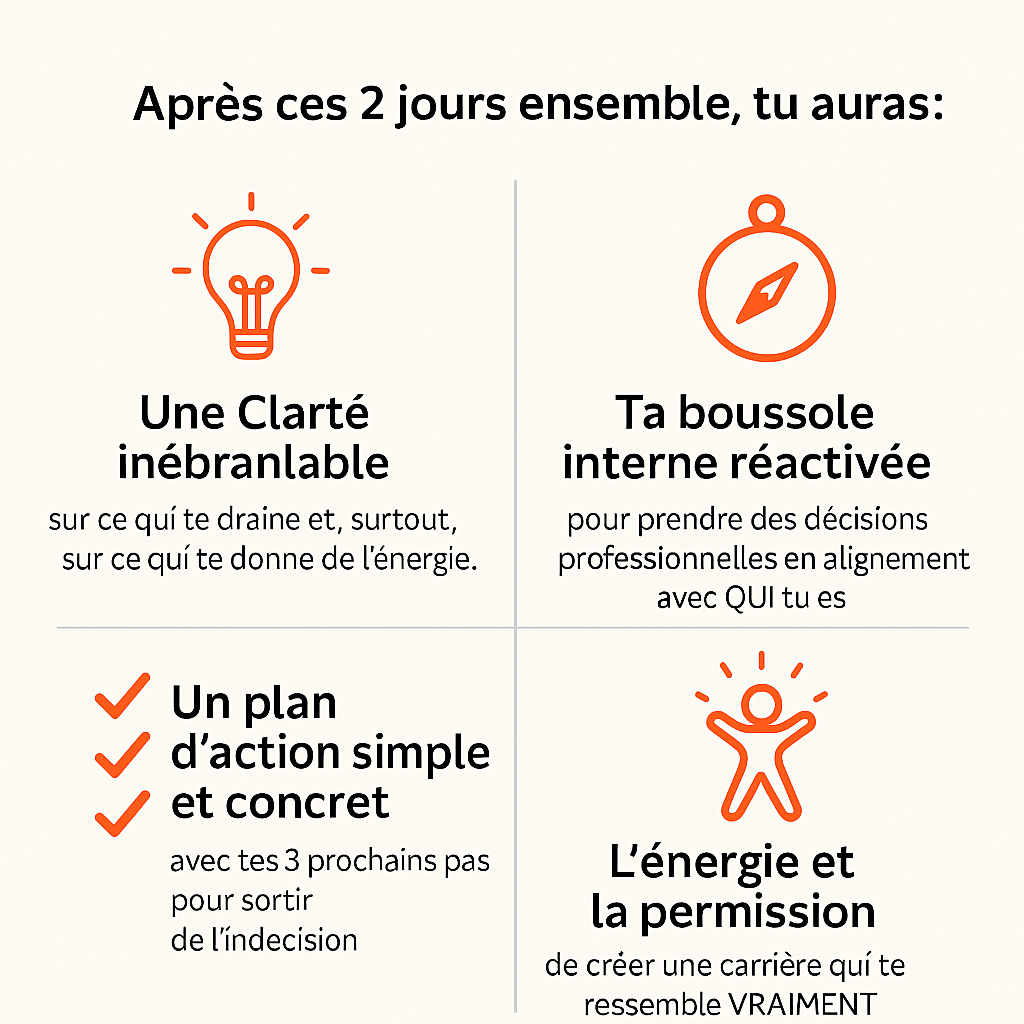 Reconnexion à tes valeurs et premiers pas concrets vers un travail qui a du sens.